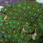 Button Polyps Zoanthus sp. are among the easiest corals to keep. They are almost always a first coral for new hobbyists, and highly recommended for beginners. They can be very colorful, with numerous color morphs ranging anywhere from a brown, to bright green, turquoise, yellow, orange, red. and more. Keeping them under a largely actinic lighting makes them appear to be glowing in the dark!
