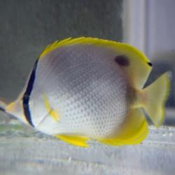 The spotfin butterflyfish is a butterflyfish found in the western Atlantic Ocean, in the Gulf of Mexico and most commonly found in the Caribbean Sea. The name is derived from the dark spot on the fish's dorsal fin. The spotfin butterfly fish can grow up to 6–8 inches. Spotfin butterfly fish are very territorial and will kill each other if put in close conditions.