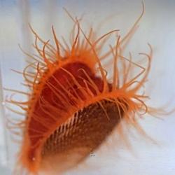 This species is found in the Caribbean Sea. It is similar in appearance to the Indo-Pacific electric flame scallop (Ctenoides ales).