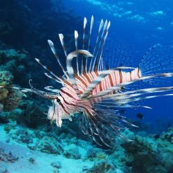 Pterois fish in the Atlantic range from 5 to 45 cm (2.0 to 17.7 in) in length, weighing from 0.025 to 1.3 kg (0.055 to 2.866 lb). They are well known for their ornate beauty, venomous spines, and unique tentacles. Juvenile lionfish have a unique tentacle located above their eye sockets that varies in phenotype between species. The evolution of this tentacle is suggested to serve to continually attract new prey; studies also suggest it plays a role in sexual selection.